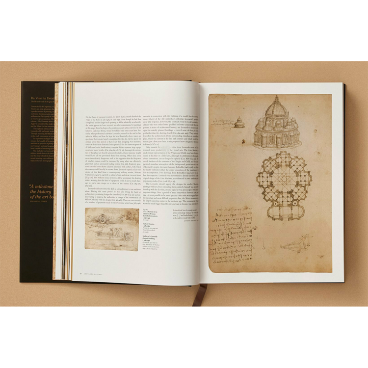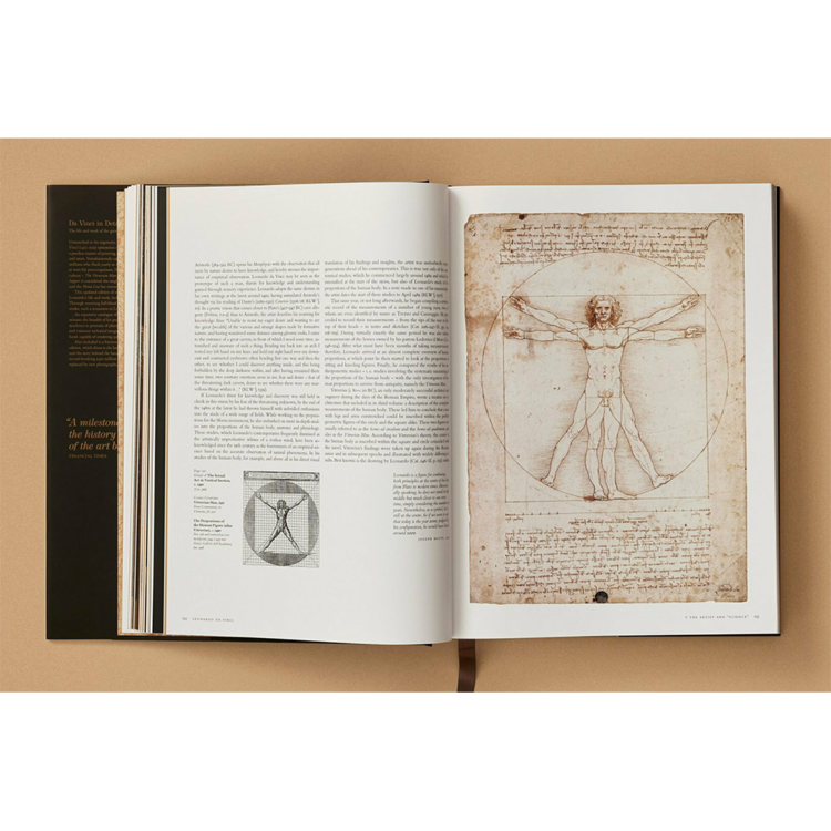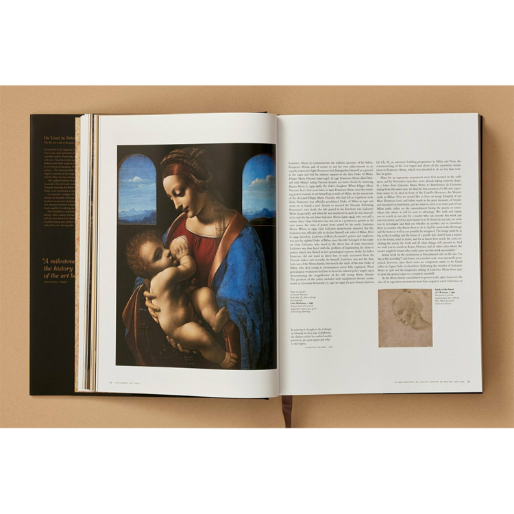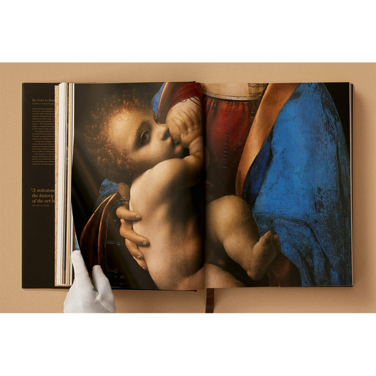 XL 모노그래프의 이번 최신판은 레오나르도의 삶과 작품에 대한 타의 추종을 불허하는 조사로, 모든 그림의 카탈로그가 있습니다. 놀라운 완전한 세부 정보를 통해, 우리는 모든 측정된 붓놀림을 경험합니다. 각각의 붓놀림은 레오나르도의 뛰어난 능력을 증명합니다. 거의 700개의 레오나르도의 그림들로 이루어진 방대한 카탈로그는 그의 추구 범위를 더욱 밝혀줍니다. 복잡하게 조작된 기계의 다이어그램에서부터 통통한 유아들의 초상화에 이르기까지, 그들은 그의 끝없이 펼쳐지는 공상적인 기술적 상상력을 반영하고 있으며, 섬세하고 통찰력 있는 손과 균형을 이루고 있으며, 감동적인 감정적 음색으로 쿼티디안 순간을 묘사할 수 있습니다.