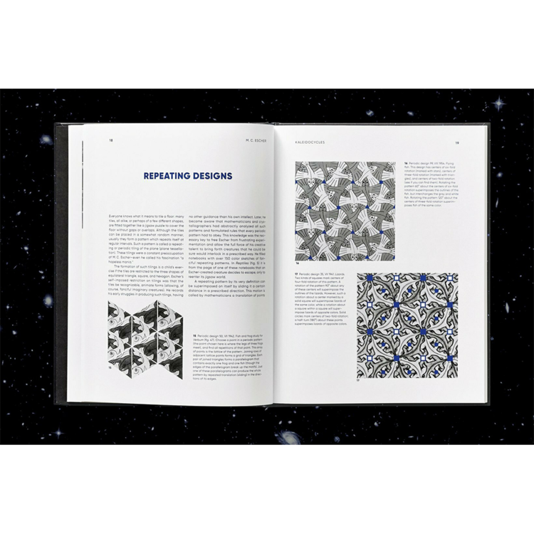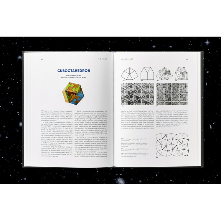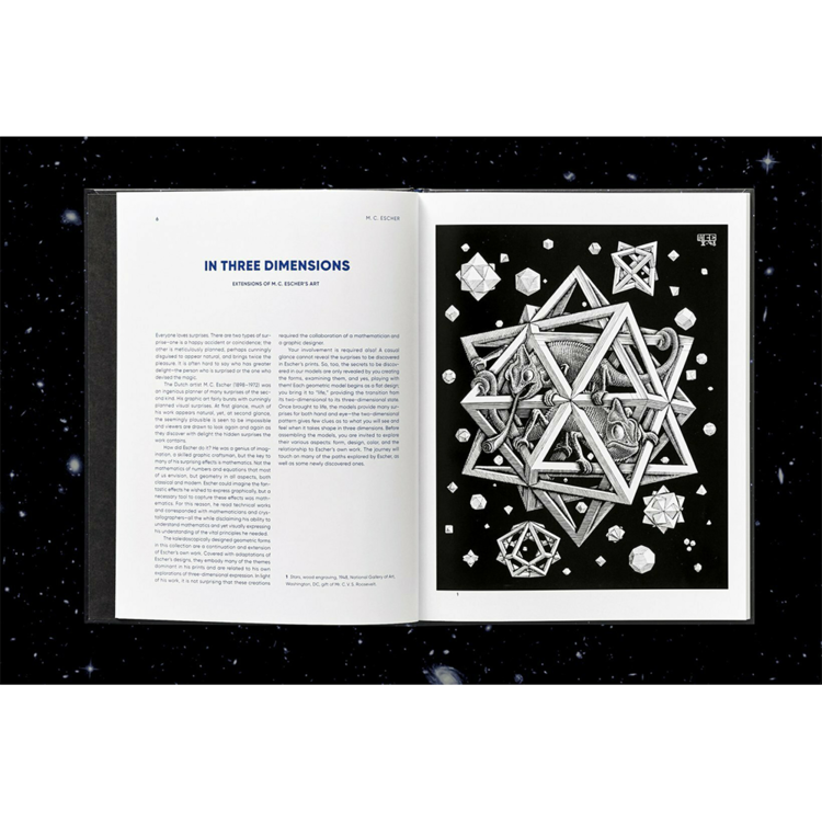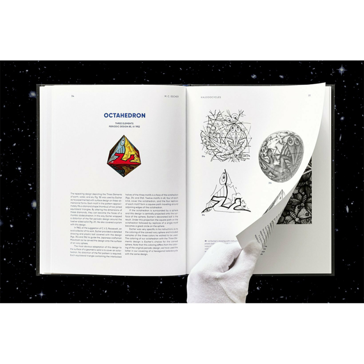 신비롭고 동시에 수학적인, 네덜란드 예술가 M.C. 에셔 (1898–1972)의 마법 같은 시각 세계는 과학자들과 학자들을 사로잡았고, 대중 문화에서 영감을 주는 책 표지, 앨범 아트, 영화, 포스터, 퍼즐에 이름을 올렸습니다. 이 세트는 조립하기 쉬운 17개의 종이 조각과 함께 에셔의 테셀레이션된 경이로운 것들을 손끝에 놓았습니다.