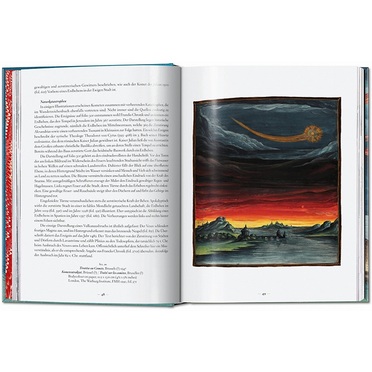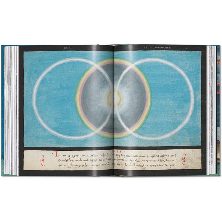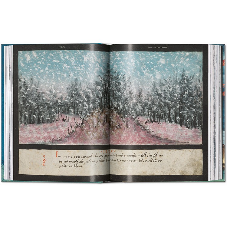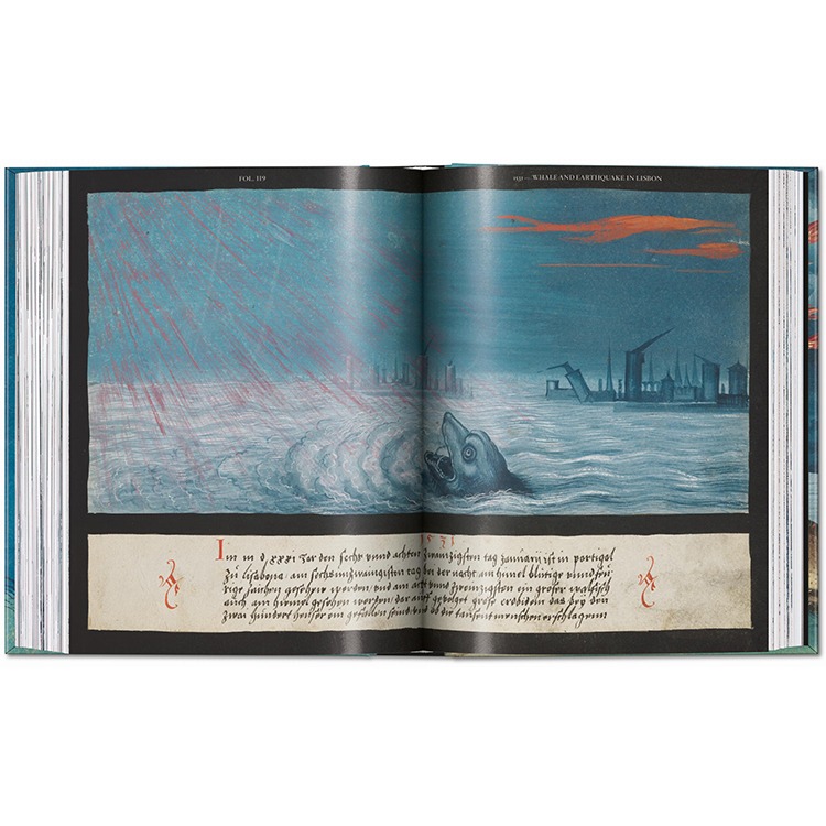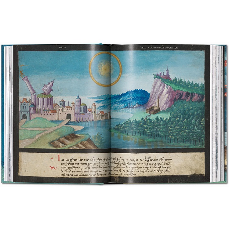 16세기 독일의 초자연적 현상에 관한 원본 원고를 완벽하게 재현한 이 책은 르네상스 미술에서 가장 놀라운 발견 중 하나입니다. 성경 이야기, 민속 전통, 종말적 비전들이 풍부하고 빛나는 세부 묘사로 결합되어 있으며, 이는 종교적 믿음, 신비, 불길함, 그리고 시각적 상상력의 매혹적인 문서입니다.