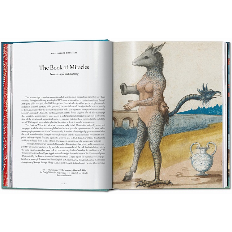 《기적의 책》은 몇 년 전 처음 등장했으며 르네상스 미술 분야에서 가장 놀라운 발견 중 하나입니다. 1550년경 아우크스부르크에서 제작된 이 거의 완전한 그림 원고는 169페이지에 걸쳐 고화와 수채화로 그려진 대형 일러스트들로 구성되어 있으며, 신비롭고 종종 섬뜩한 현상들을 묘사하고 있습니다.
